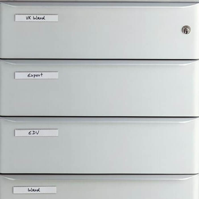 Ideális irattárolók, polcok, fiókok, szekrények és technikai felszerelések feliratozásához, irodában, raktárban vagy otthon.