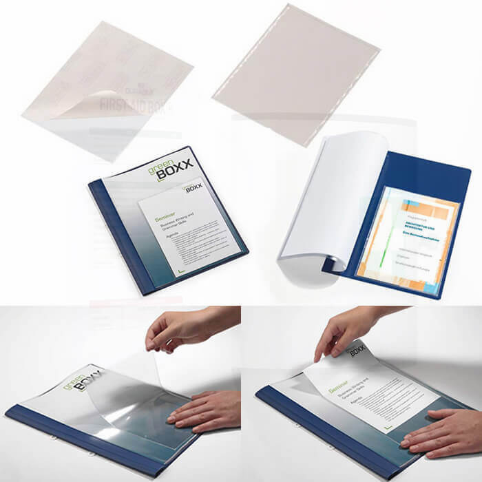 Az öntapadó zseb, ideális A5 formátumú dokumentumok kihelyezésére, vagy gyűrűskönyvek, iratrendezők megszemélyesítésére
