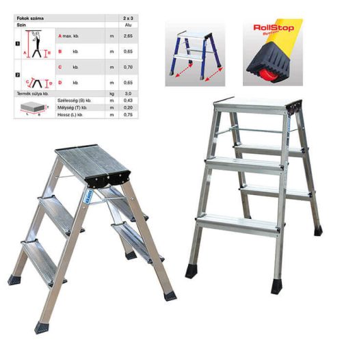 Rolly gurítható lépcsőfokos fellépő, 2x3 fokos